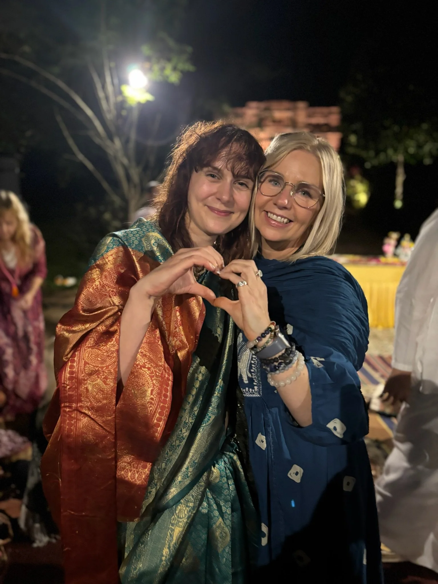 Satsang is a Sanskrit word meaning “coming together in truth.” During this moment, the group shares a short reflection or intention for the couple, creating a meaningful pause of connection, love, and support before the celebration continues.